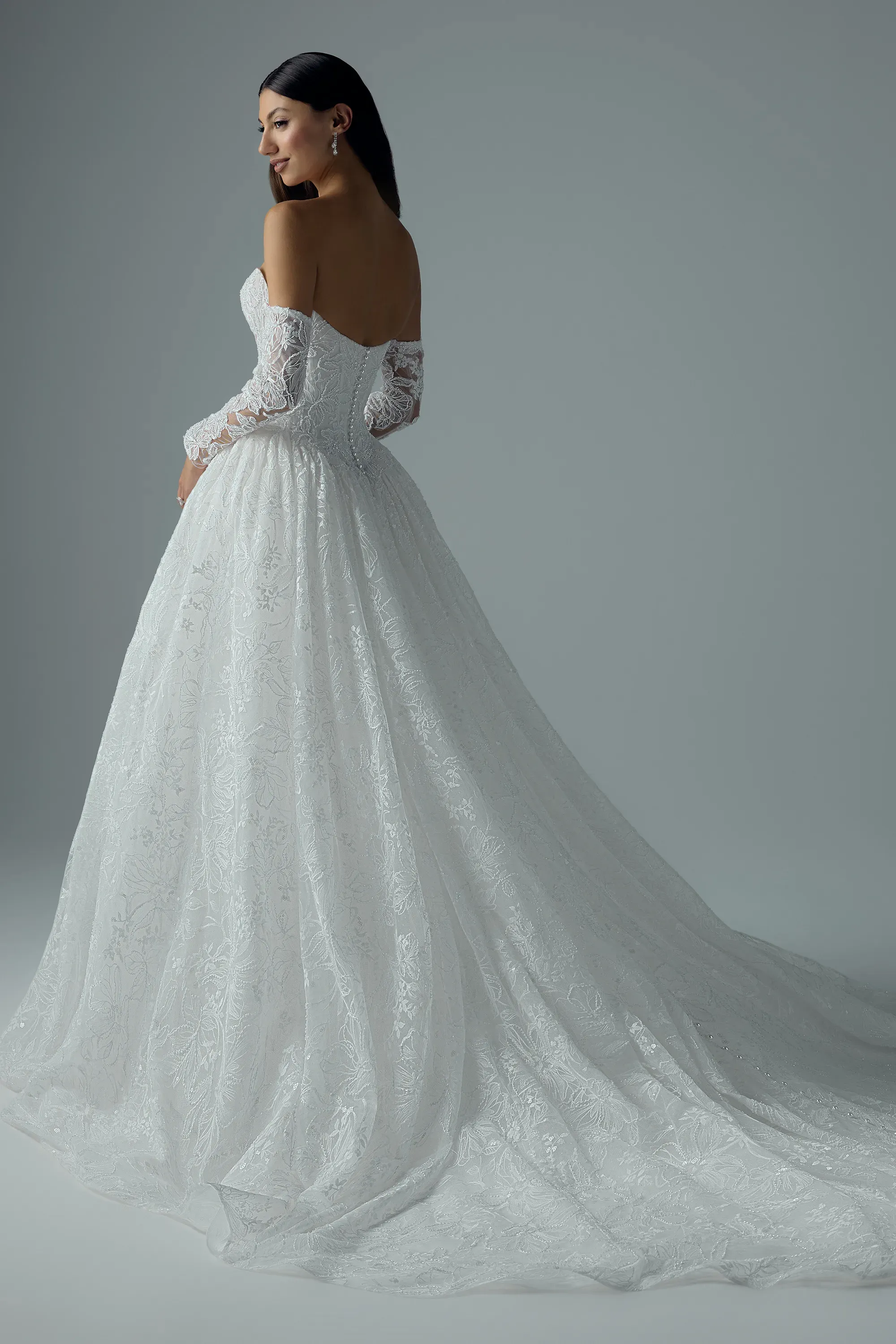 If you prefer a more traditional bridal look, Hibiscus can be purchased with a solid bodice as Style ST672SB.